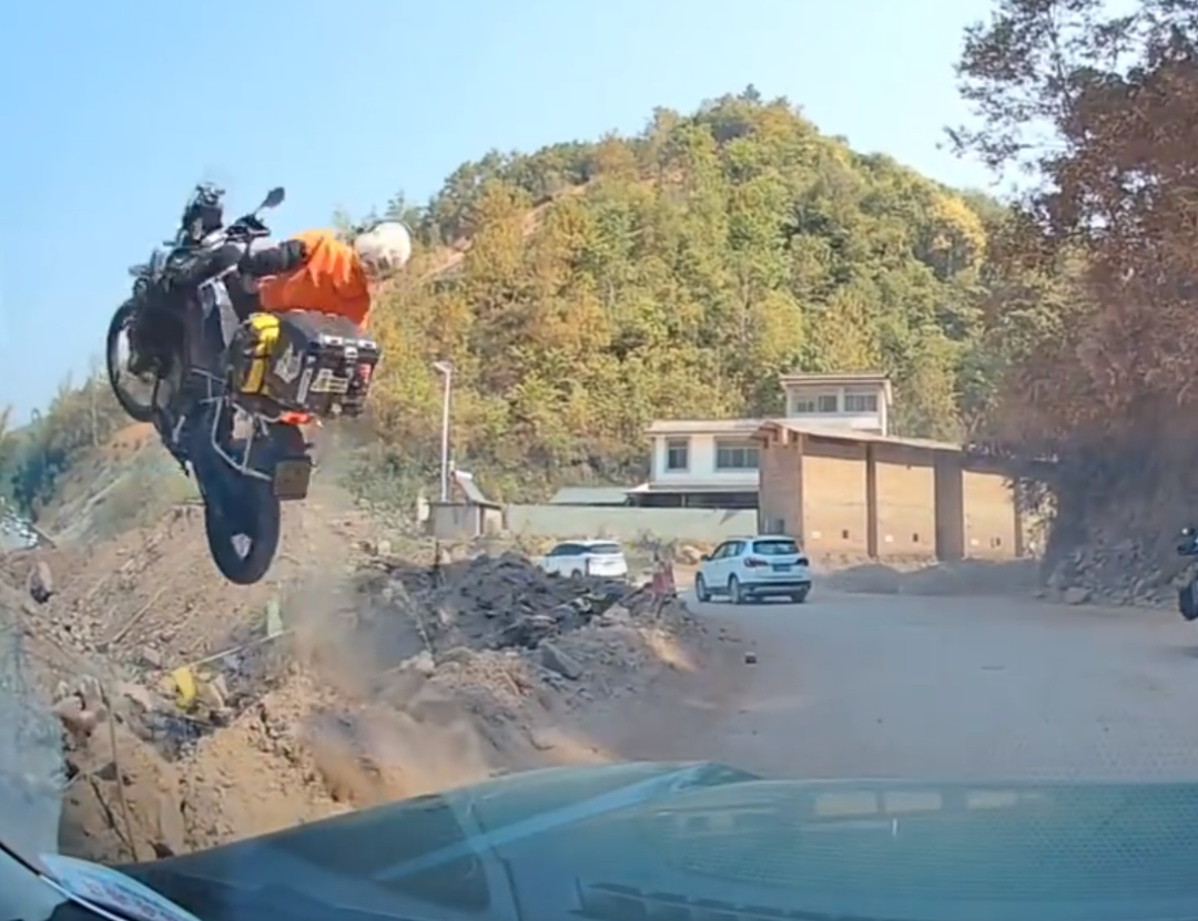 女子骑摩托失控坠坡画面火出圈,当事人回应:人没事,擦伤都没有